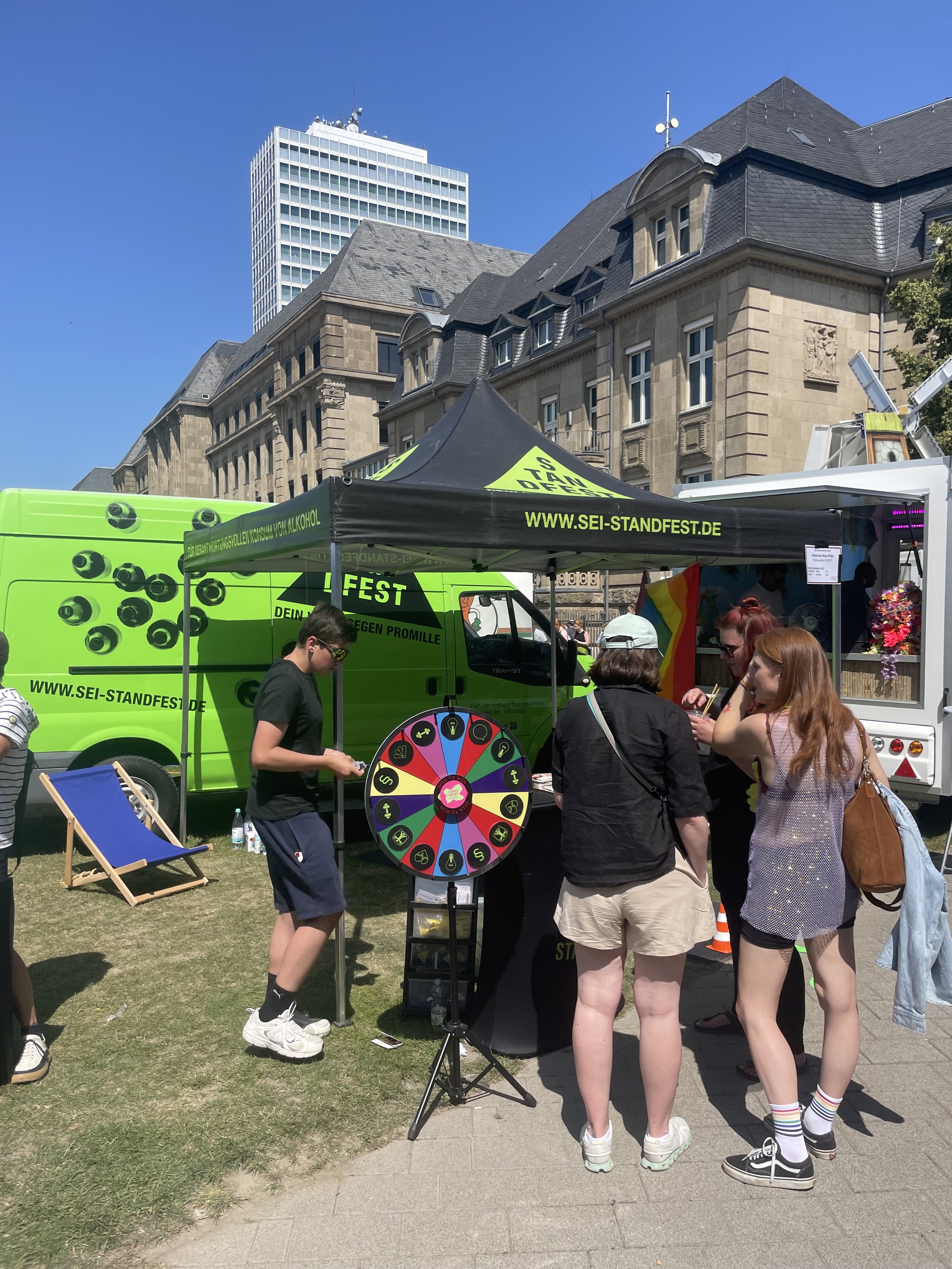 Gleichaltrige Ehrenamtliche – unsere Peers – kommen mit Jugendlichen ins Gespräch und klären über Risiken auf. Ob mit dem Kleinbus, dem Lastenrad oder zu Fuß unterwegs – das Ziel unseres alkoholpräventiven Projekts bleibt dasselbe: offen reden, ehrlich informieren und zum Nachdenken anregen.